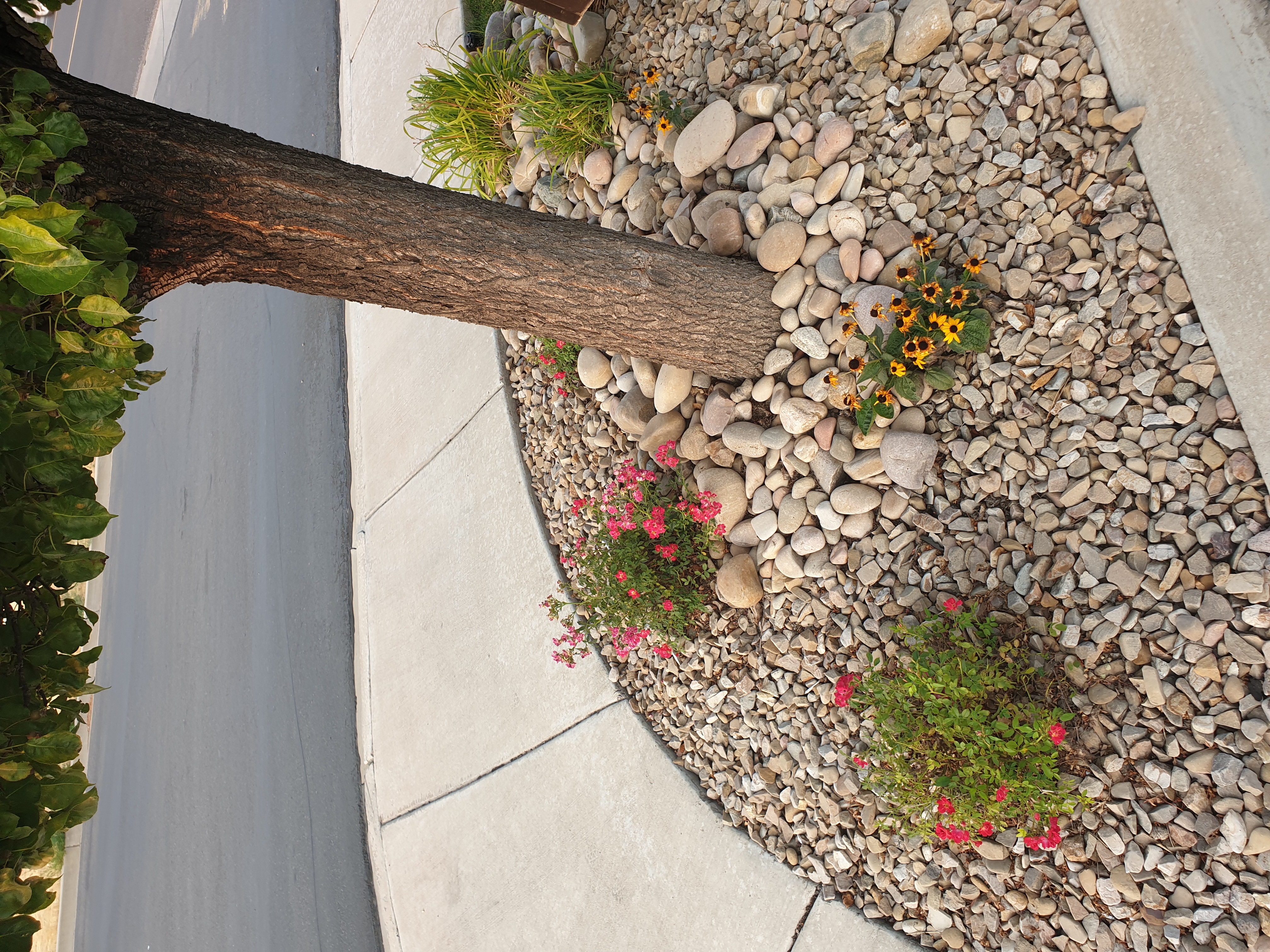 This cobble is a rough, round, tan material with tones of pink, gray, and white. Commonly used for xeriscape landscaping and flower beds. Available in a variety of sizes.